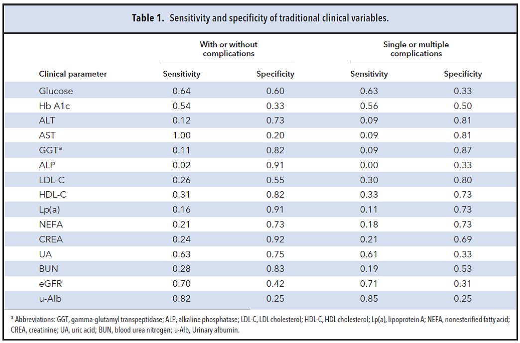 該研究入組了62例2型糖尿病病人,采用5hmC-Seal技術對血漿cfDNA中表觀遺傳標志物5hmC的分布情況進行檢測,分析5hmC標志物與2型糖尿病血管并發(fā)癥發(fā)生發(fā)展的相關性。結果表明5hmC標志物的變化與T2D合并大血管/微血管事件具有相關性,主要涉及一些與血管生物學和糖尿病(包括胰島素耐受和炎癥反應)相關的基因和信號通路。該研究建立的16個基因-5hmC標志物組合檢測可以準確區(qū)分有并發(fā)癥和無并發(fā)癥的2型糖尿病病人[實驗組:AUC=0.85;95% CI,0.73-0.96],明顯優(yōu)于傳統(tǒng)臨床變量例如白蛋白尿。除此之外,還建立了13個基因-5hmC標志物組合檢測,可以進一步區(qū)分T2D合并單一并發(fā)癥和多種并發(fā)癥[實驗組:AUC=0.84;95% CI,0.68-0.99],同樣明顯優(yōu)于其他傳統(tǒng)臨床變量。該研究得出結論,5hmC標志物反映了T2D病人大血管/微血管并發(fā)癥發(fā)生過程中的表觀遺傳變化,因而5hmC-Seal檢測技術在監(jiān)測糖尿病血管并發(fā)癥發(fā)生和進展方面具有良好的臨床應用前景。